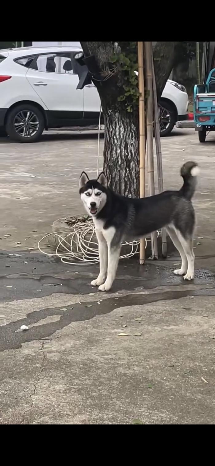 南山竹海附近,不知道谁家的哈士奇跑我们家来了。主人赶紧来认领。