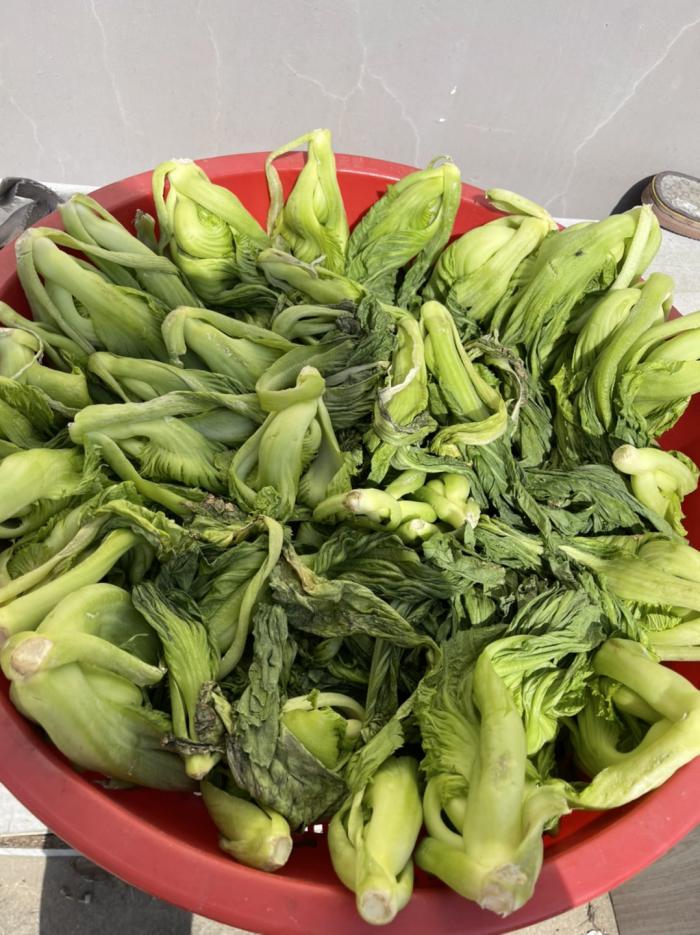 趁着星期天,赶紧把买点菜洗一洗搞一下,溧阳人哪个不爱吃!!我就问问!今天被家里人骂了一顿,说我不勤快,哎,我怕我勤快起来你们不习惯啦。赶忙跑到操场买点菜,回家洗洗晒晒,趁着有点太阳,准备腌制一下,过过泡饭,送送人,别说,我的手艺我自己也佩服,好吃到子要你相信,哈哈哈哈哈,有点脸皮厚,自己夸自己了,前期工作来一波,给你们看看,然后去邀功了,嘿嘿嘿…动一记,一身汗哇,不容易哦。