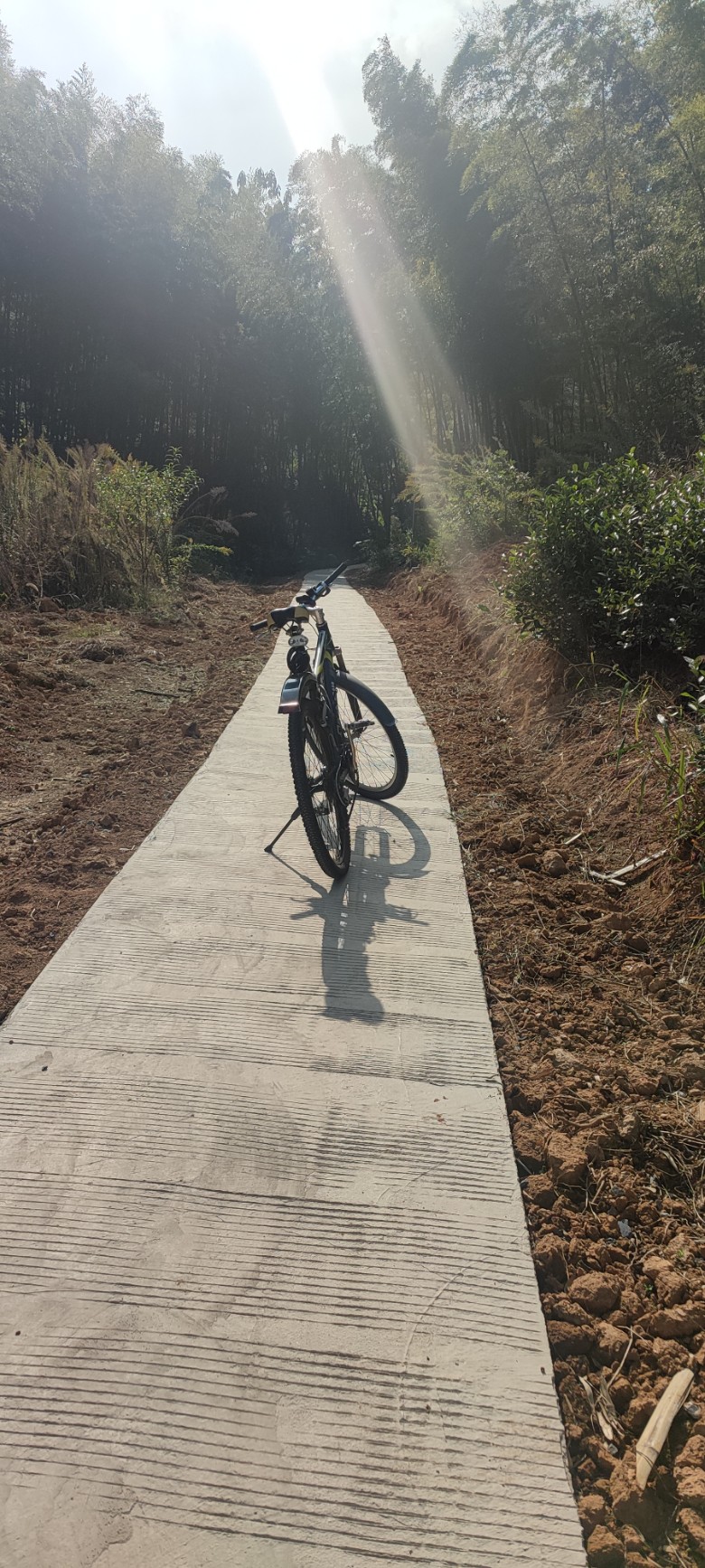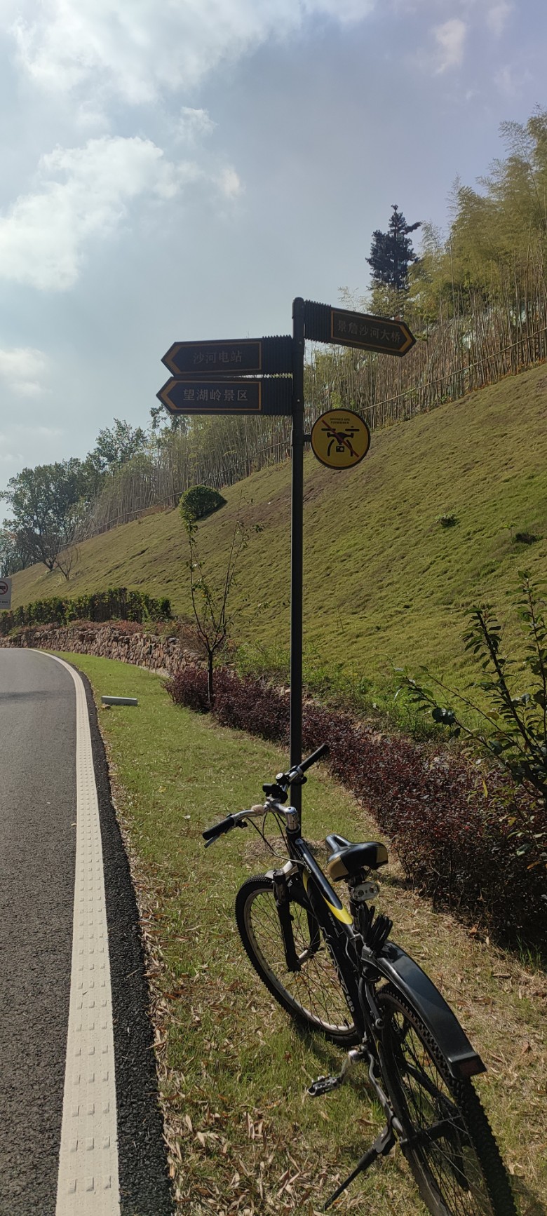 快到景詹大桥时,我被一个路牌引入了一片停车场,路牌上写着大概意思是“去景詹大桥走这里有近路抄”,我信了。然后,就是一片停车场,上一张照片就是我拍的所谓的“近路”,我推着自行车在45度的陡坡上推行了一段路后就全是陡峭的台阶了,我只好扛起自行车继续走。