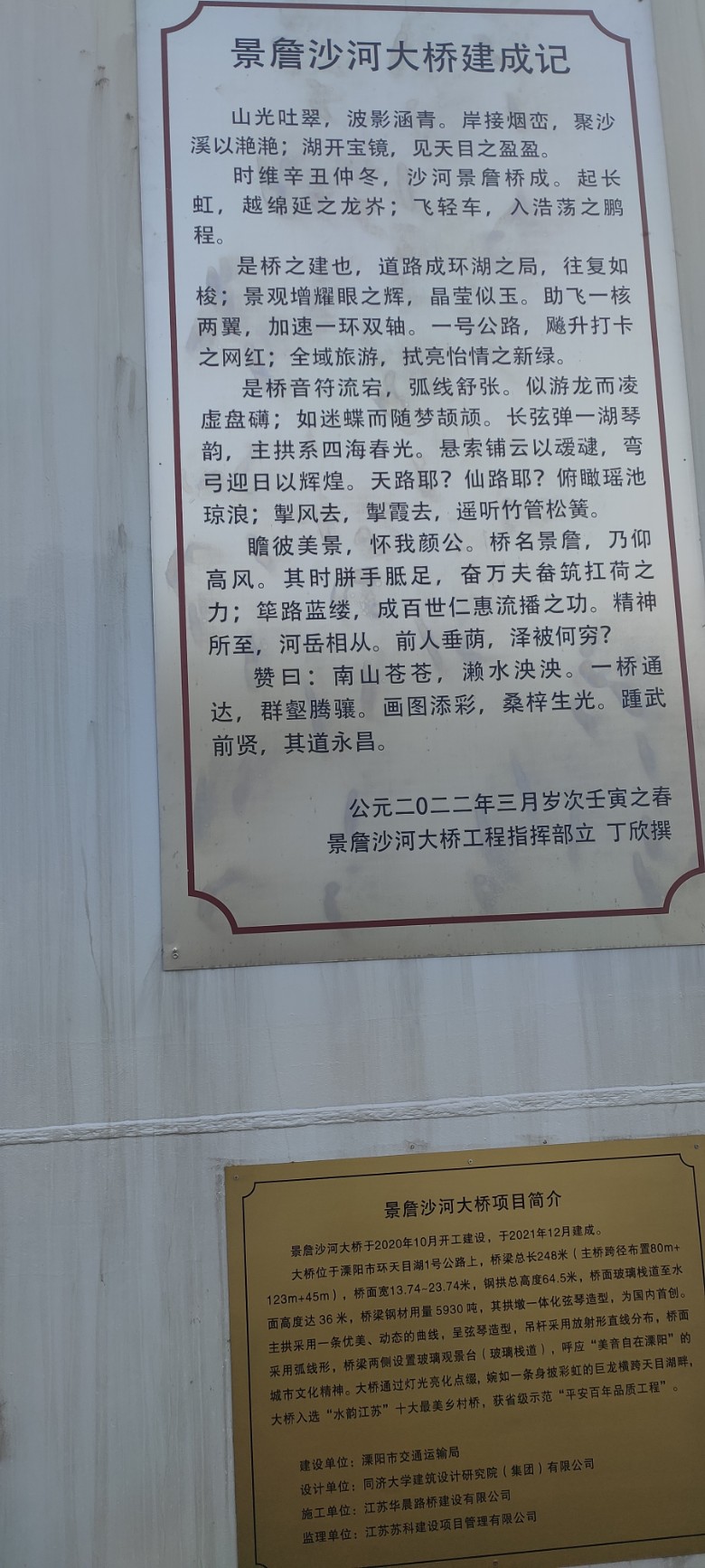 溧阳最近几个月来最出名的两座大桥,按年代顺序,一是山丫大桥,一是景詹大桥,两座桥在它们各种的年代都对得起“大桥”的“大”字。比较有意思的是,景詹大桥的桥名是为了纪念景詹公,正是在他的带领下,沙河水库得以建成,而正是沙河水库的建成,让恩泽路人百年的山丫桥没入了湖底,今天又正是景詹大桥的通途,让我可以方便的骑车拜访山丫桥。