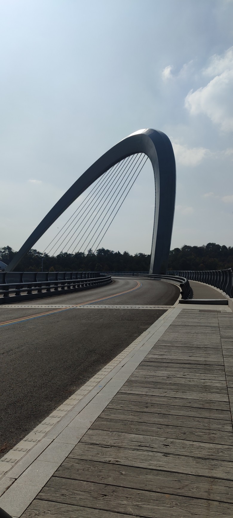 有一点路牌是没说错的,就是当我扛着自行车,气喘吁吁的重新回归到环湖主路时,景詹大桥就矗立在我面前了。