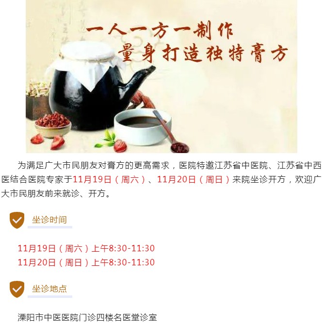 江苏省名中医坐诊 │ 溧阳市中医医院第十一届膏方节,三甲医院专家来院坐诊开方