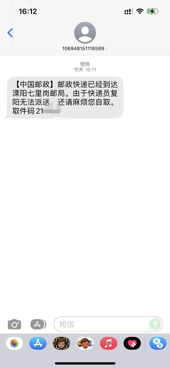 要求收件人到代收点自取快递是现在快递投送乱象,中国邮政更离谱,发一个信息给收件人:“【中国邮政】邮政快递已经到达溧阳七里岗邮局。由于快递员复阳无法派送还请麻烦您自取”为由,要求客户到七里岗邮政快递点自取,这个就有点过分了,取件点离市区较远,收件人自取确实比较不方便,也违反相关法律规定,希望邮政管理部门以与纠正。