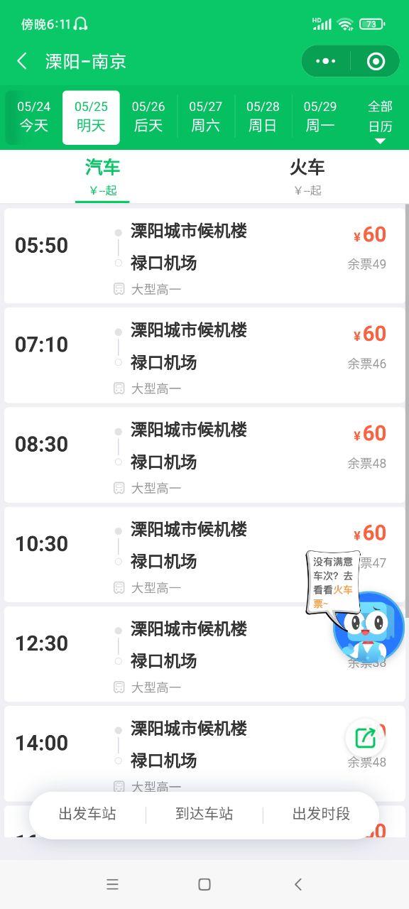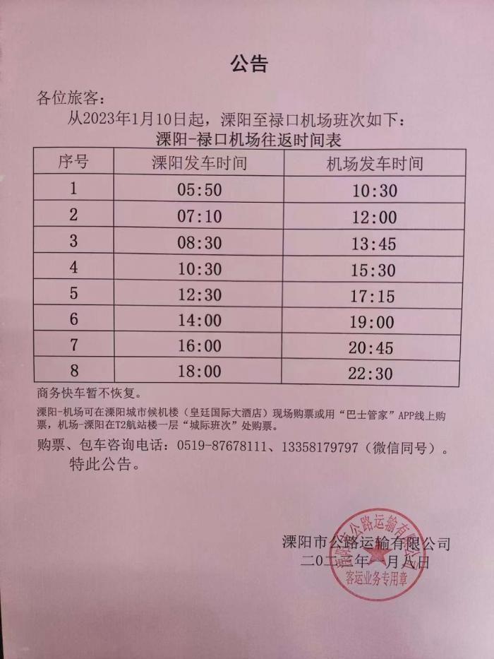 有谁知道最早的大巴溧阳到禄口机场最早几点?