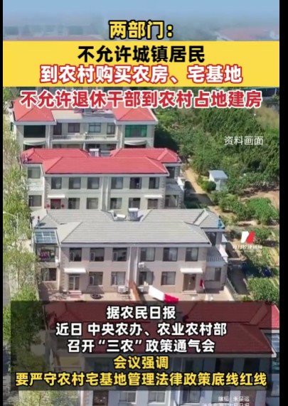 两部门:不允许城镇居民到农村购买农房、宅基地,不允许退休干部..
