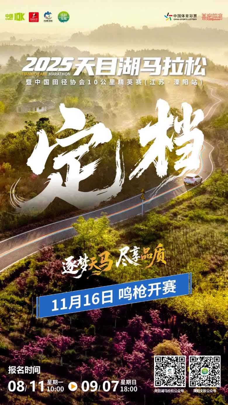 官宣 | 2025天目湖马拉松暨中国田径协会10公里精英赛(江苏·溧阳站)定档11月16日!8月11日10:00开启报名! 就在11月16日,天目湖的风,穿过南山竹海的青翠,再次与你相约!逐梦天马,尽享品质!