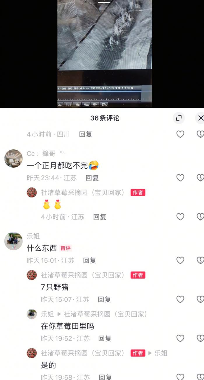天啊!7只野猪出没,在草莓园里好惊人!溧阳人都惊呆了!