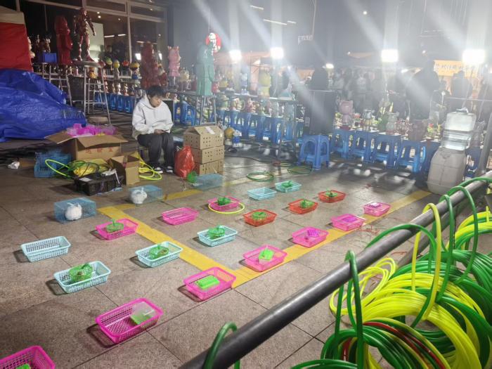 溧阳大润发门口也有市集了,还挺热闹的么,之前商场门口也就看上河城那有过,没想到这里也有了,现场人还挺多的,一群人围着套圈圈那里,都在看看谁运气好能套中个回家,现在市集吃的东西花样变多了,看着好像还有炒菜的,还有卤羊蹄,羊汤…就是这天气太冷,去逛的话还得穿多一点。