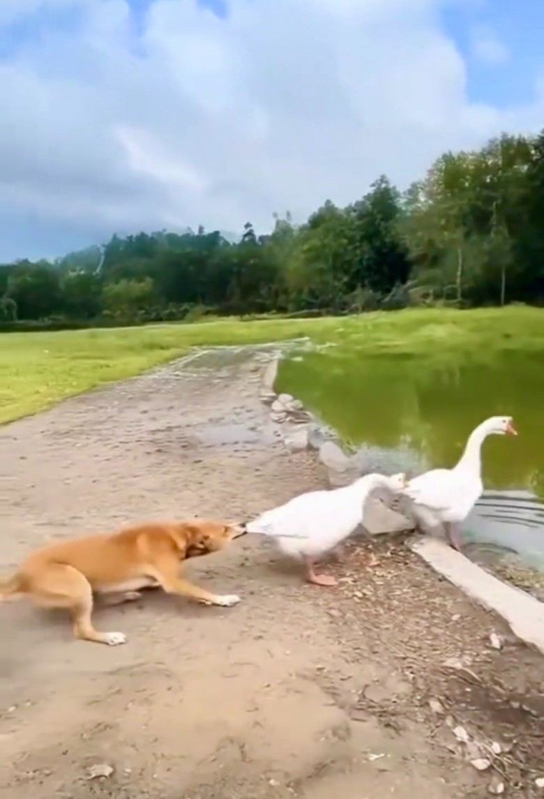 动物的迷惑行为,溧阳金山岕大黄狗和白鹅成精了?