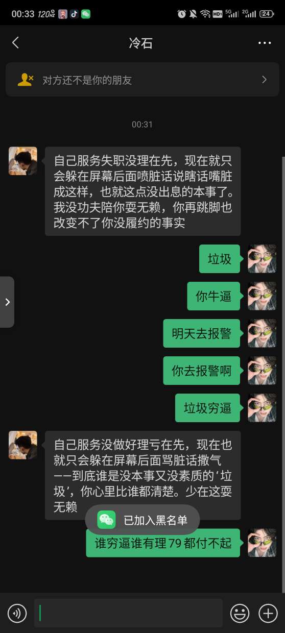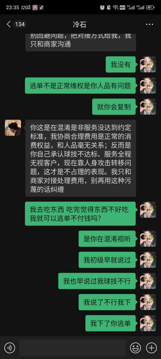 刘某你喜欢逃单是吧,你不满意可以换 ,没有可以不付钱的道理