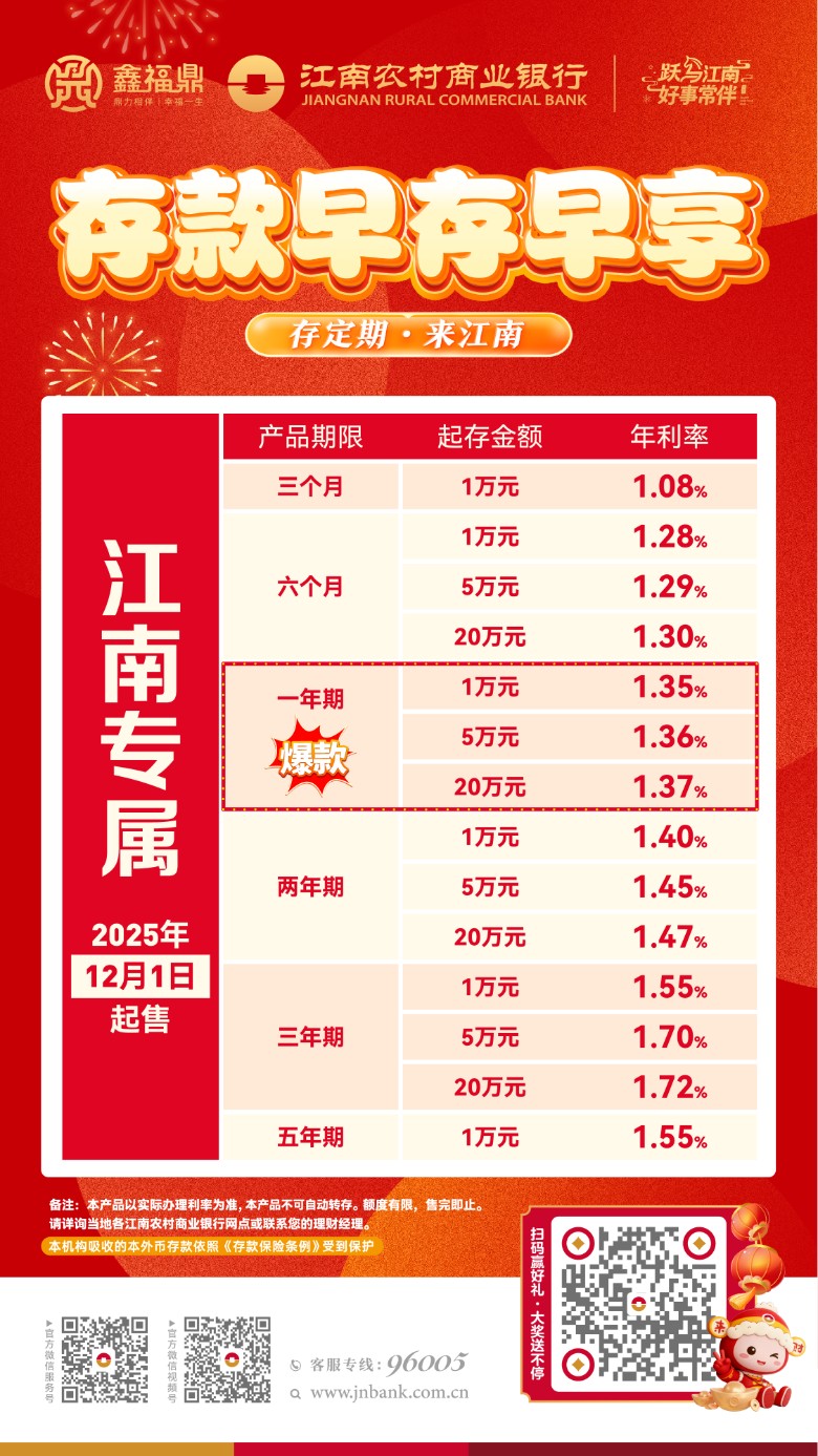 存定期来江南!江南农村商业专属产品上线,财富稳稳增长!
