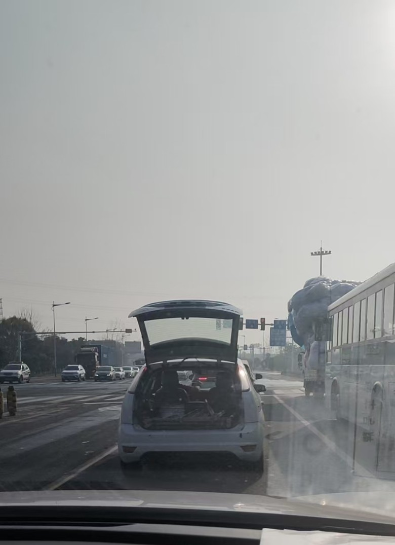 刚在路上看到前面的一辆车后备箱给开着,前面这车你的后背露出来了,不得不说前车这样很挡视线啊,但是看看这后背箱也没放很多东西啊,你滴车漏风啦,能关还是关上吧,挡后车视线