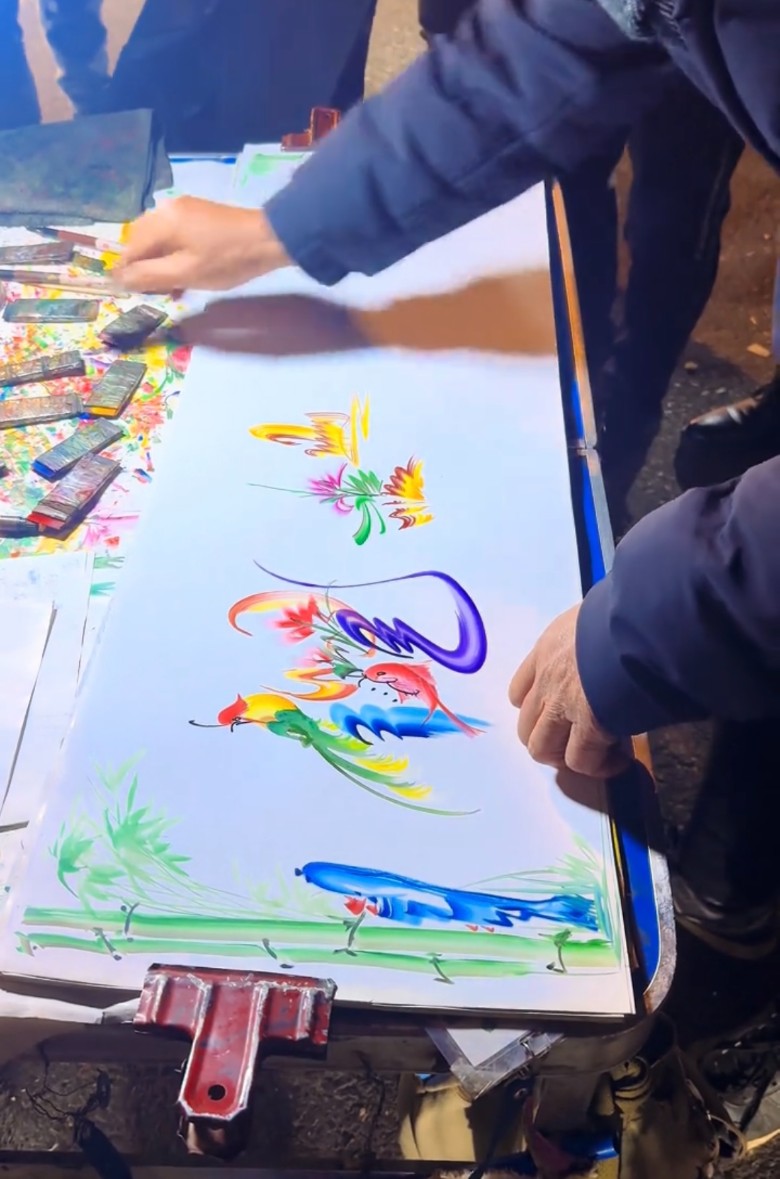 十来年前,溧阳交流的时候可流行这种字画了,走几步就有个这样的字画摊,摊主大多是四五十岁的中年大叔,以名作画,画得“龙飞凤舞”,漂亮极了!那时候一个字十块钱,一幅画画下来对于穷学生来说算是一笔巨款了,一晃十几年过去,这样的字画摊也少了,估计会这个技术的大叔们也上年纪在安享晚年喽。