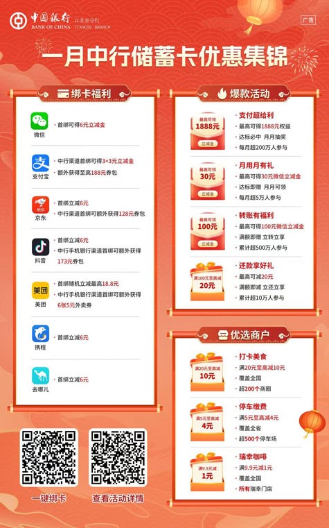 1月|绑定中行卡,让每一份支付都多一份惊喜!