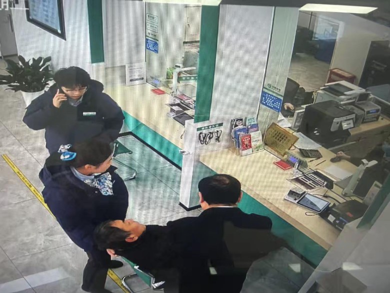 2026 年1月20日下午13时31分,溧阳景鸿农行营业大厅内突发紧急状况:一名正在办理业务的老年客户突然身体不适,出现呼吸急促、身体抽搐等症状,随后竟完全丧失意识,情况十分危急。一场与时间赛跑的生命救援行动,在大厅内迅速展开。