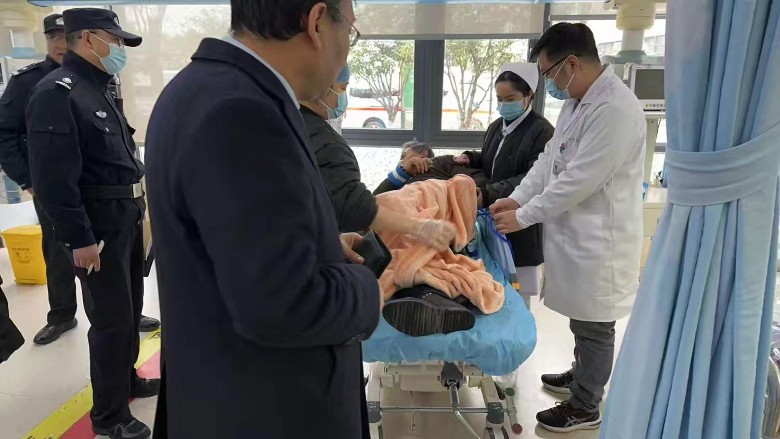 不久后,120急救人员顺利抵达网点。农行员工主动配合医护人员开展救助工作,小心翼翼地协助将客户平稳转移至救护车上。今日大雪天气,气温较低,内勤主管秦燕担心寒冷天气会让老人感染风寒,不利于身体康复,立刻从网点取出一件毛毯,细心地为老人盖上。考虑到家属和民警尚未赶到,为了让客户在就医途中有人照料,支行特意安排两名员工坐上救护车,全程陪同客户前往医院。从发现客户异常到成功送上救护车,整个救援流程高效衔接、环环相扣,仅用了10分钟时间,为客户赢得了至关重要的宝贵救治时间。