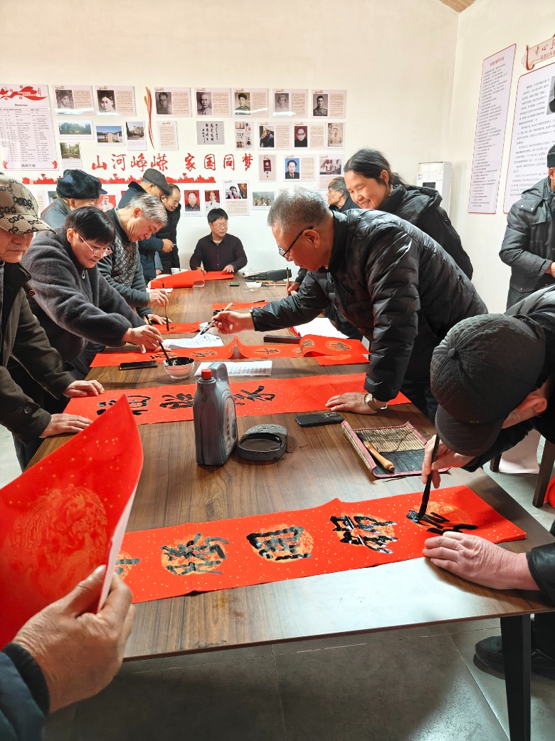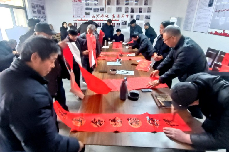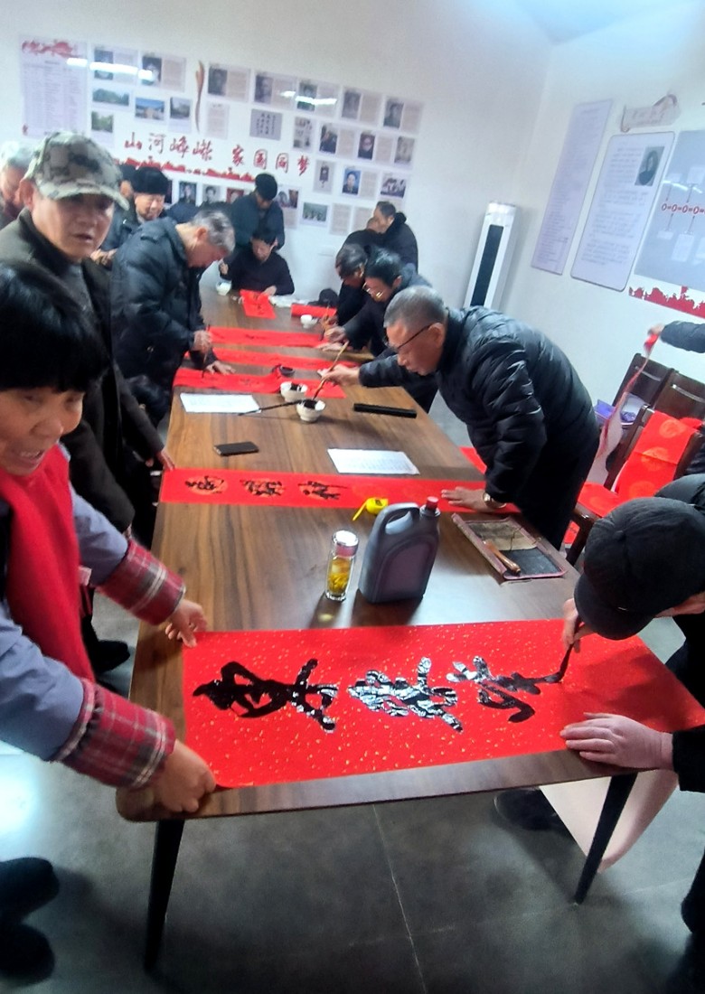 诗人刚诵完,书法家腕间发力,笔画行云流水,转眼便成一联。围观者连连赞叹,有人求赠阖家安康的春联,有人盼得事业顺遂的佳句,诗人按需即兴创作,书法家挥毫不停,红纸一张张写满,墨香混着年味愈发醇厚。不多时,室内就铺满春联,红底黑字映着众人笑意,既有文人雅韵,又满是新春暖意,为即将到来的新年添了鲜活的喜庆。