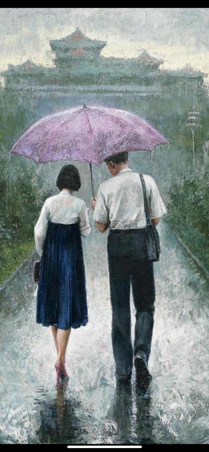 及至成家,偶与妻子同逛市集,若逢细雨,便共撑一把黑阳伞。我执伞柄,她依偎身侧,步履轻缓,避过积水。雨水敲打伞面,如奏清音;我左手撑伞,右手轻揽她肩,她左手环我腰,右手提袋。非为炫耀恩爱,而是情之所至,自然流露,恰如“执子之手,与子偕老”的日常写照。