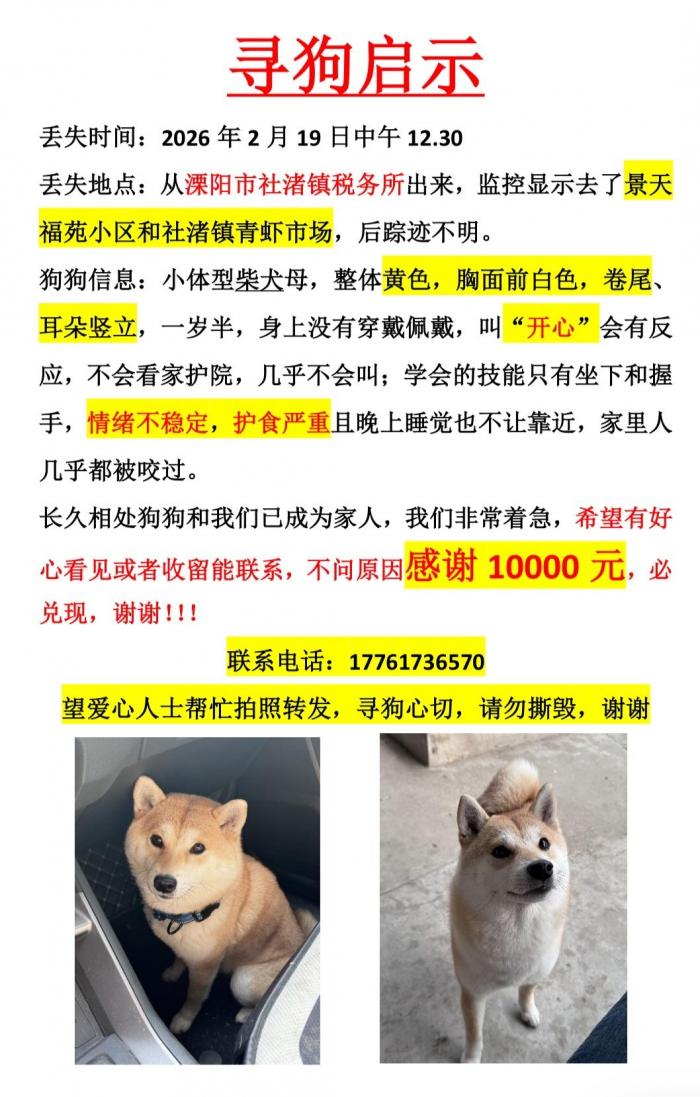 家中小狗走丢,劳烦有线索的好心人及时联系我们,谢谢