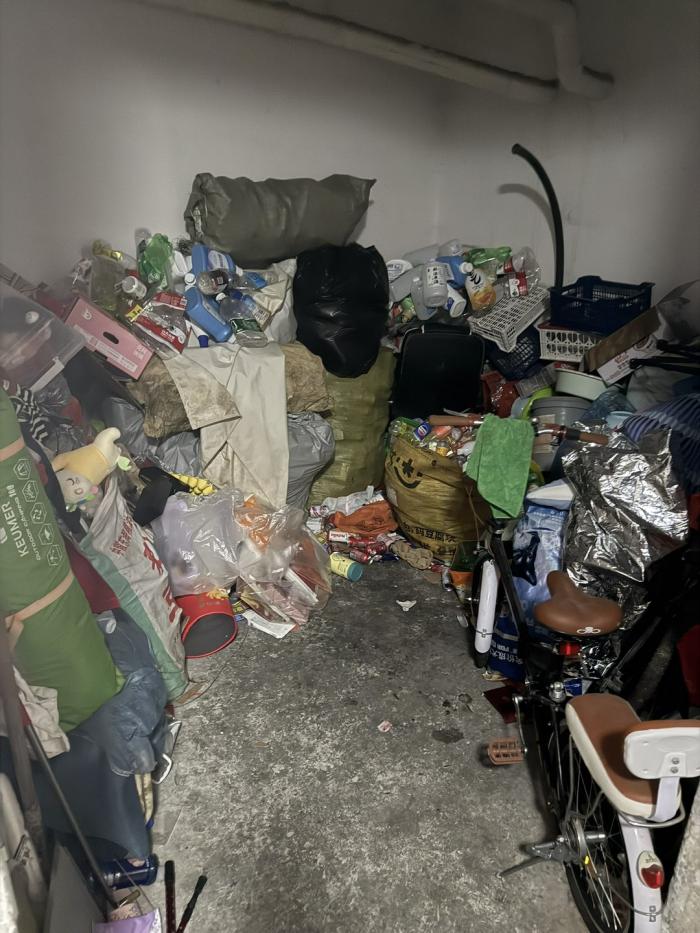 现场堆放大量纸箱、塑料袋、废旧衣物、电动车、自行车等易燃杂物,杂乱无章堆积在公共空间,完全堵塞消防通道与疏散路径,杂物长期堆积易引发火灾,且一旦起火会严重阻碍人员疏散与消防救援,严重威胁全体居民生命财产安全。