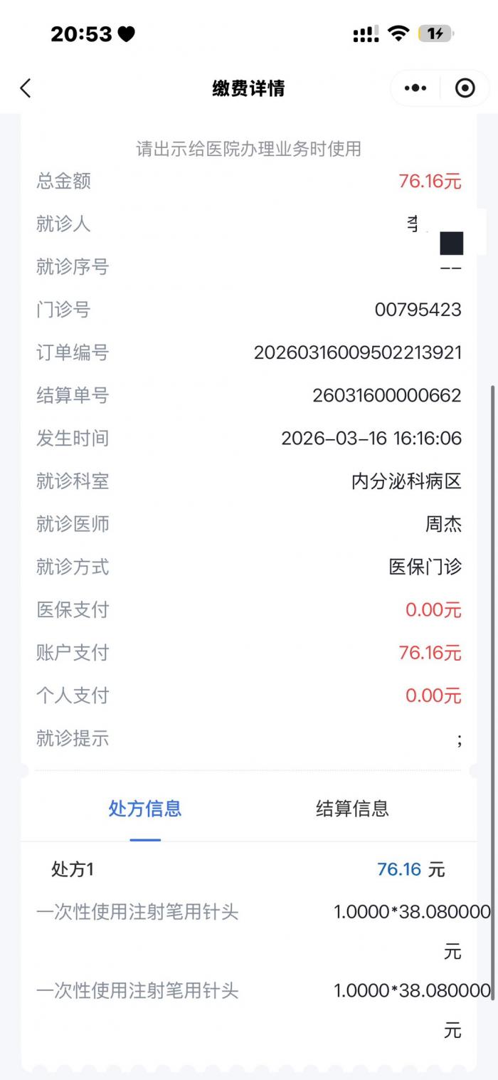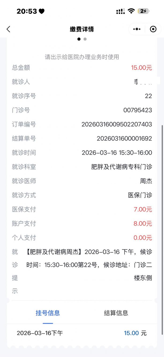 26年3月16日挂了贵院的肥胖代谢门诊科,就诊过程中一切正常,一直到缴费的时候,周主任给我开了一盒针头,但是因医院系统问题,导致我支付了两盒针头的钱,拿药时,中药房告知开具的数量,和我支付的订单量不一致,需要退掉一盒的价格,于是我找到周主任,主任告知我,到收费处直接退掉一笔就可以,于是我在门诊二楼中药房旁边的收费处进行退款,故事就从这里开始变得有意思了