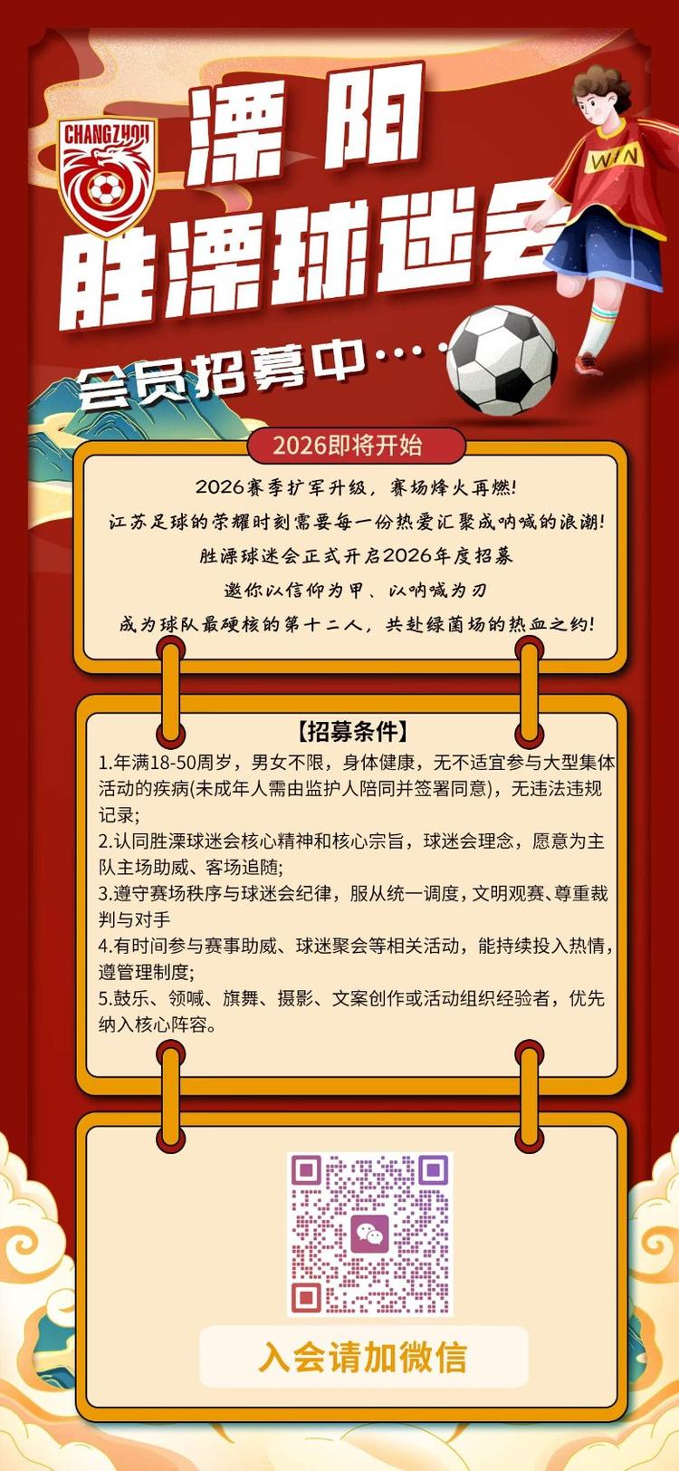 加入我们,穿上同样的颜色,喊出同样的声音——为江苏而战!为苏超喝彩!为溧阳争光!