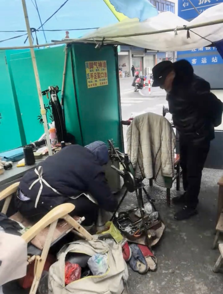 溧阳竹箦老街感觉像是被时间遗忘了一样,这里还保留着好多老建筑老风景老店,以及一些老手艺人的小铺子。看到了一个非常老式的理发店,店主是个头发花白的老大叔,店里的布局还保留着九十年代的风格,非常老式。还在街边看到个小摊子,像是个修鞋摊,现在也很难见到了。