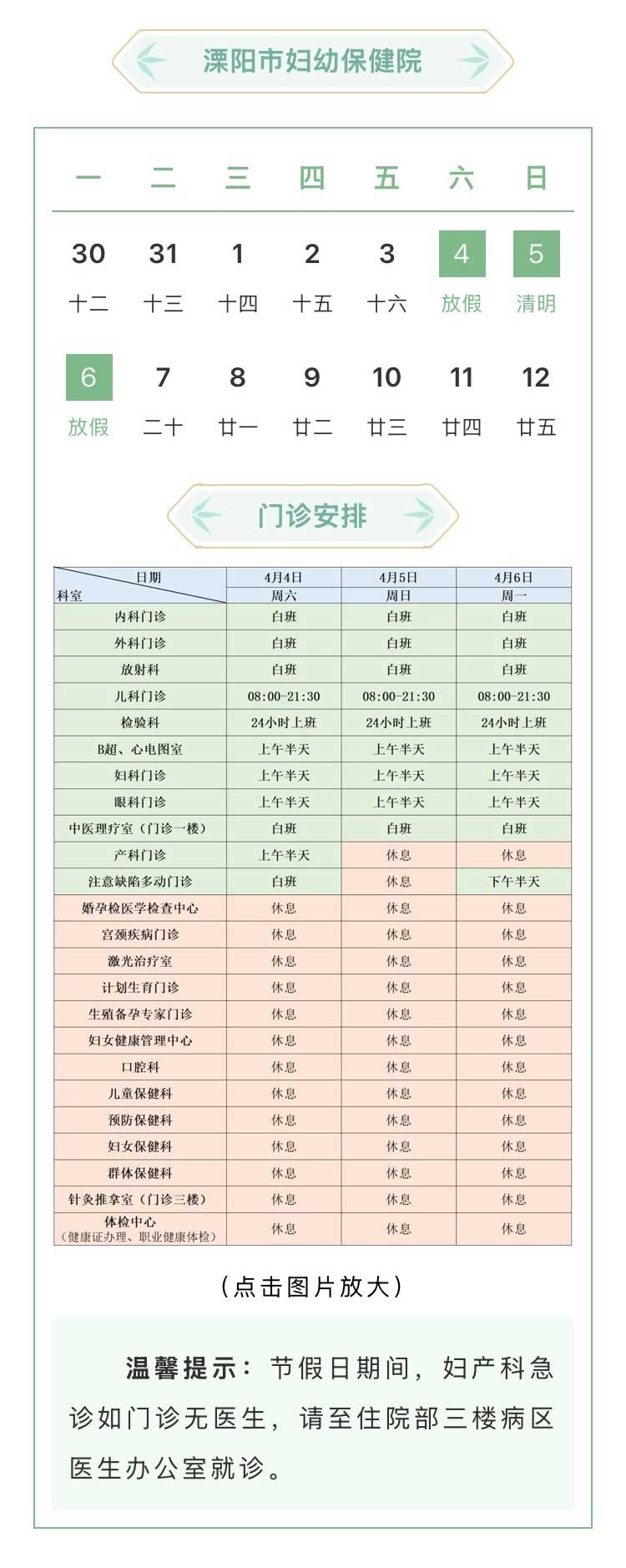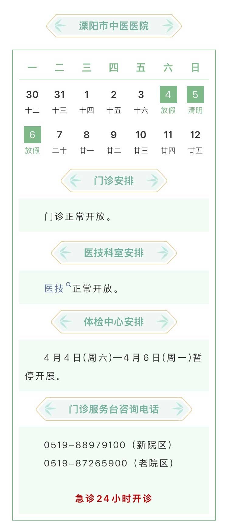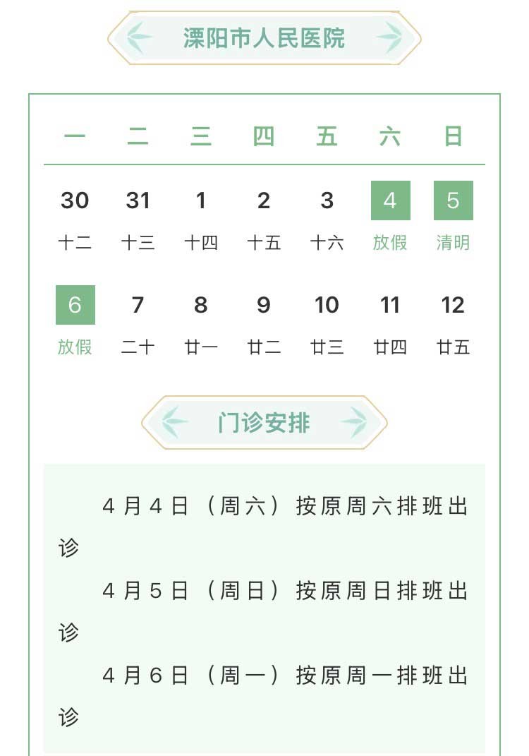 溧阳市级医院清明假期工作安排
