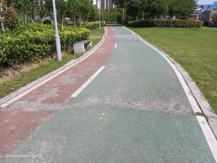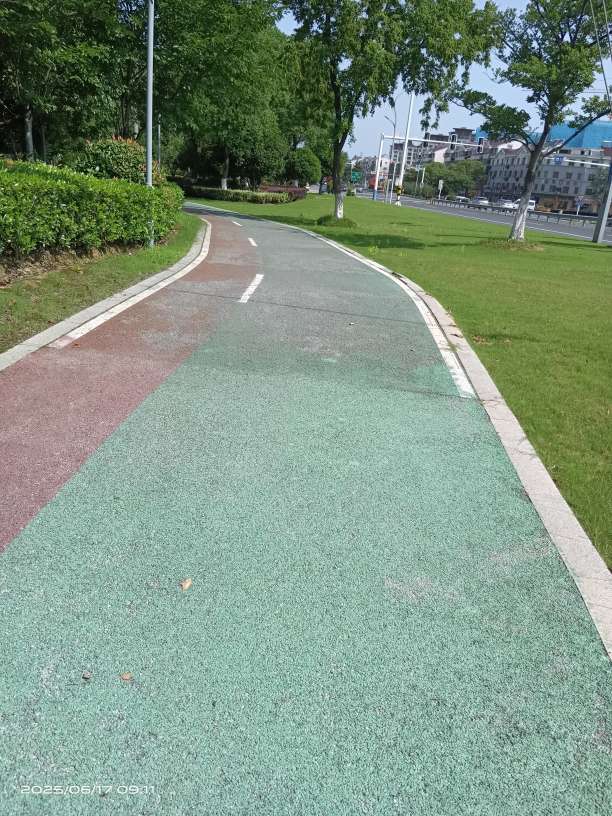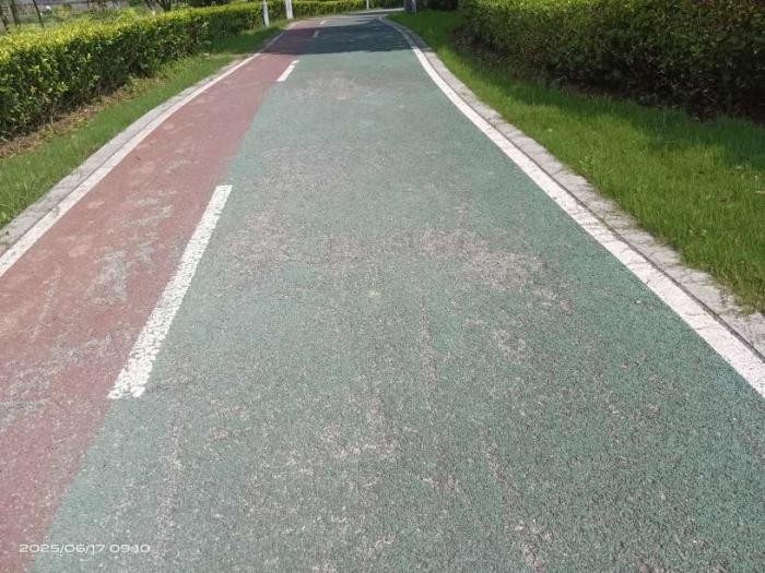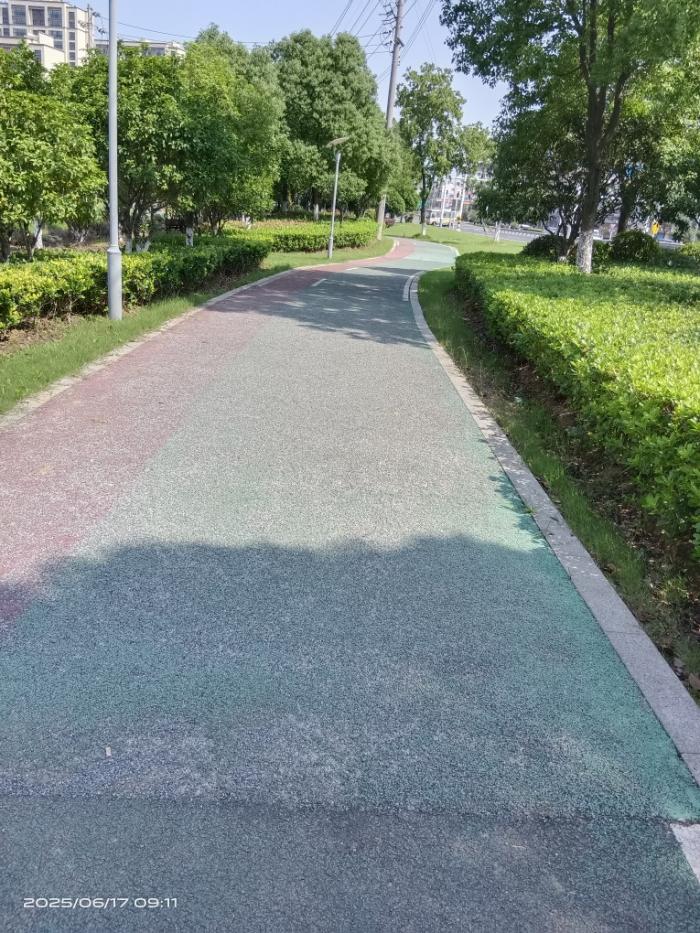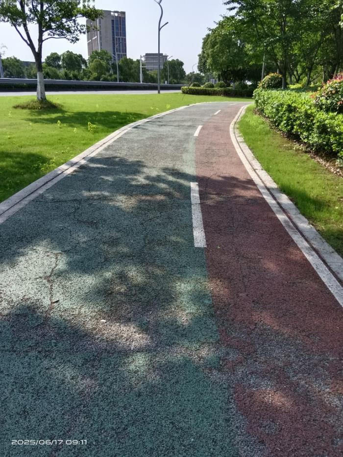 大美上兴就是不一般,就连公路边上绿化带中间的“彩色人行道”也别具一格