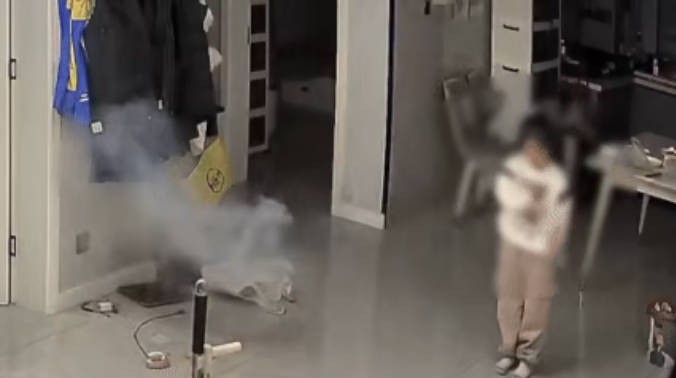 事发时,小女孩正在将拼好的图案进行熨烫。突然,熨斗起火,火花四溅,小女孩立刻拔掉电源,手却被烫伤。