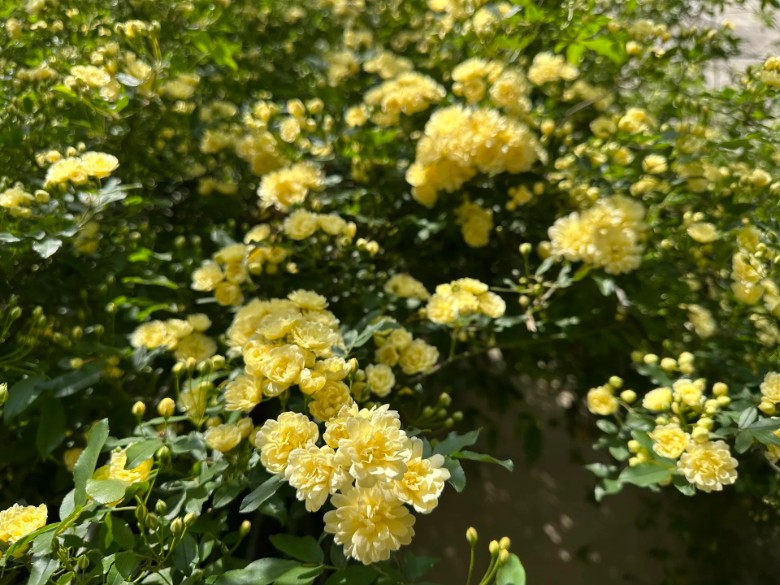 春天真是花花的世界,继看了油菜花、迎春花、玉兰花、樱花、海棠花...之后,我又在溧阳绸缪村一户人家看到了一堵木香花墙,当时我去亲戚家串门,偶然路过这边,一下子就被这面花墙吸引住了目光!淡黄色的花开得那叫一个热闹,走过去会有阵阵似有若无的清香,这是独属于春日的浪漫!