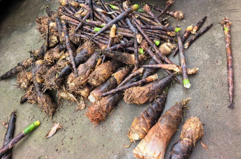 最近几天都下雨,太适合挖笋了,溧阳上兴山里的春笋全都憋足了劲儿,齐刷刷从土里冒了尖。雨后的泥土松软好挖,竹林里随处可见的笋,扛上锄头往山里走,一挖一个带劲的很。现在的春笋嫩的很,正是吃笋的时候,怎么烧都好吃,我们家吃的最多的好像是咸菜烧咸猪肉。