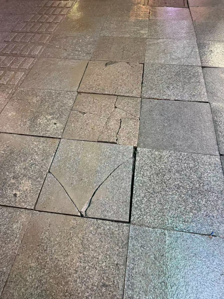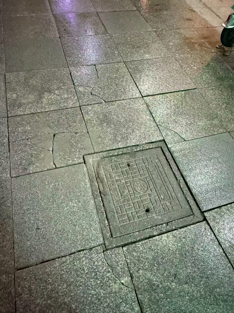 上兴友发公司路口红绿灯处路面有个大坑,快有1个月了